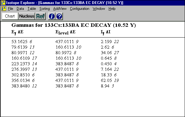 Tables (sorted on increasing gamma-ray energy) Click table headers to resort the data. Return to the tour
