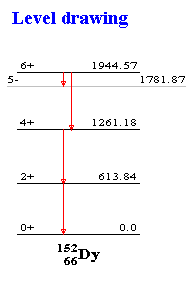 Isotope Explorer can plot nuclear decay schemes in the traditional way. If bands are selected, the decay scheme is plotted as a band plot, as is shown in the figure. In band plots the attributes of gamma-rays (energy, intensity, etc.) are shown in the status bar when the cursor is on top of the gamma. |