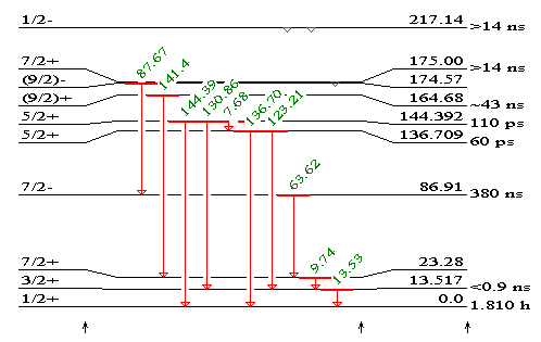 In level scheme mode a level scheme is drawn like in the example below: